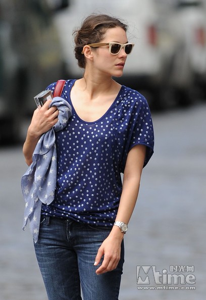 奥斯卡影后、法国美女玛丽昂·歌迪亚近日停留在纽约,4日现身soho区一家苹果专卖店,一身休闲装扮依旧清丽脱俗,蓝点T恤同蓝白相间的围巾很有些美国国旗的味道,似乎是7月4日老美国庆日最适合的搭配。当天晚上,歌迪亚还出席了在Bowery酒店举行的时装学院庆典,以一袭银色人鱼装争艳众女星,还同《九》的制片方温斯坦公司的老板哈维交谈甚欢。歌迪亚出演的暑期档重头戏《奠基》宣传大幕即将拉开,而她还将接演伍迪·艾伦执导的新片,不过到时会回到老家巴黎拍摄。