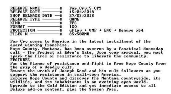 《孤岛惊魂5》发布19天之后的2018年04月16日,CPY正式宣告《孤岛惊魂5》已经被他们破解了。