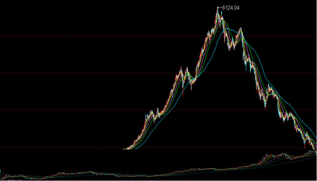 给大家一个直观的感受,借助了一张比较著名的图,这是中国的 A 股从 998 到 6124 点,跌股到 1700 点,这是 A 选项。
