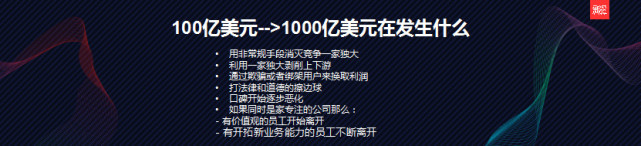 尤其在中国,尤其在互联网。后两个伤害,比戴维斯双杀还严重,因为优秀的人才开始更大规模的离开。我刚才讲的从 100 亿到 1000 亿的过程中,有开创新业务能力的员工离开。但是到了 1000 亿到 100 亿过程中,那些有方法优化现有业务的员工也会离开。
