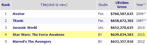 ↓北美票房榜影史排位↓(截止到2015.12.30)