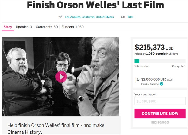 为奥逊·威尔斯未完成的遗作《风的另一侧》剪辑、配乐而进行的募资项目,正在众筹平台indiegogo网站上进行,60天内募集200万美元的任务目前仅完成了11%(相关报道)