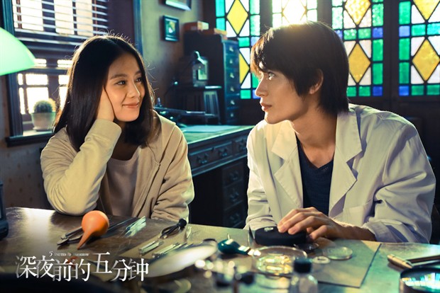 在电影中,三浦春马时而头戴毛线帽,骑着“小电驴”走街串巷,时而白衣翩翩,凝神修表,把温暖男神“阿良”这一形象刻画得入木三分,在任何情况下阿良都始终如一地去爱,沉浸在自己的世界里、默默守候着慢五分钟的爱情。在片场,无论遇到怎样的拍摄困难,三浦春马都会以其特有的招牌笑容面对。在导演行定勋眼中,三浦春马是一个有独立思想的演员,有着自己的表演理想;在“情敌”搭档张孝全眼中,三浦春马私底下就是一个可爱的大男孩,但开始拍戏的时候,他就是另外一个状态,非常认真和专注。《深夜前的五分钟》讲述了一个带有悬疑色彩的爱情故事,将观众带进现实和虚构之间错综复杂的意境。三浦春马饰演的阿良和张孝全饰演的天伦,同时爱上刘诗诗饰演的双生姐妹若蓝和如玫,然而两人的情感似乎一直被热衷于“身份互换”游戏的两姐妹所愚弄。经历一场海难后归来的人究竟是姐姐还是妹妹,让阿良和天伦迷惑且痛苦不已。在这部电影中,有爱情故事,也有推理的成分在里面。