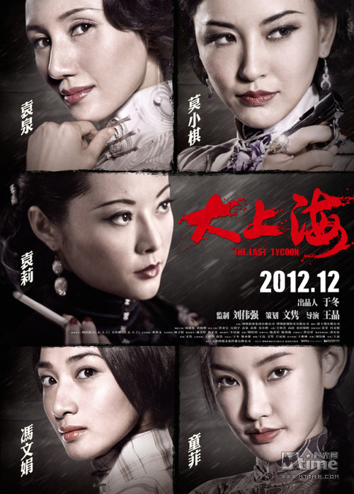 今天(11月11日)下午,讲述上海滩江湖传奇的枭雄片《大上海》在京举办了一场特别的发布会,袁泉、莫小棋、冯文娟、童菲和郑亦桐五位成大器的女人们在光棍节集体“单身”亮相,而周润发、黄晓明、洪金宝、吴镇宇这几位江湖男人却未现身。出品方博纳影业集团总裁于冬在发布会上宣布,《大上海》确定于12月22日正式登陆全国各大院线,他预计《大上海》连同博纳投资的另一部影片《一代宗师》将会在贺岁档拿下10亿票房。同时,《大上海》还在当日曝光了剧场版预告片和六款女性角色海报。