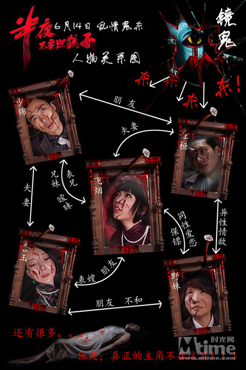 由牛朝阳导演,关智斌、李曼筠、张钧涵、及莉、徐汶萱等多位人气明星主演的青春惊悚片《半夜不要照镜子》近日曝光了人物关系图。这是该片第一次详细介绍片中角色,以及各个角色之间的具体关系。引人关注的是,其中女一号飞烟和女二号野妹之间的关系,竟然被官方定义为“同性爱恋”,一时间引发了影迷们广泛的热议和猜疑。