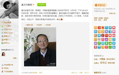 今日(9日)上午11:20分,华洪长胜(北京)投资有限公司动画事业部总监更新微博,称知名动画艺术家、教育家,中国动画教育的奠基人张松林,于昨日(8日)2:45分与世长辞,享年80岁。又据新闻晨报的消息,老人系突发脑梗在上海溘然去世的。