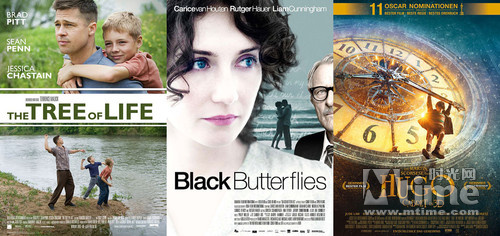 左起:《生命之树》《黑蝶漫舞》《雨果》海报