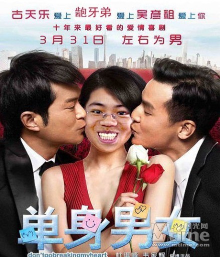 例如,3月31日刚刚上映的电影《单身男女》,借其海报在微博上着实火了一把。海报中呈现的是被吴彦祖和古天乐亲吻面颊的高圆圆,有网友则把陈奕迅、赵本山以及刚刚蹿红网络的“露牙哥”PS上去。