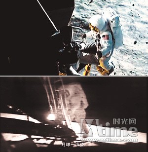 开篇,两部预告片都在最明显的位置交代了“1969年”人类登月的时代背景,“月球一小步,人类一大步”的名言,也是两片不可或缺的元素。在发现变形金刚和神奇侠侣之时,两片中的宇航员也都不忘呼唤“休斯敦”。更有趣的是,连拍摄宇航员迈出步子,两片都选择了近乎一致的镜头角度。唯一不同的是,《变形金刚3》选择彩色翻拍历史片段,而《神奇侠侣》则是采用了黑白片的形式。