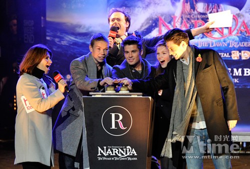 《纳尼亚传奇》系列电影的影响力虽然不能与《哈利波特》相提并论,但其出身和血统的高贵却毋庸置疑。该系列第三部《黎明踏浪号》被选为了今年的皇室首映的电影,将于30日在英女王的注视下举行首映礼,而在9日,该片主演本·巴恩斯、乔基·亨莉、威尔·保尔特等人又现身摄政街主持今年的圣诞亮灯仪式,与伦敦各届民众共欢。而去年在这里亮灯的影片是改编自狄更斯名著的《圣诞颂歌》。