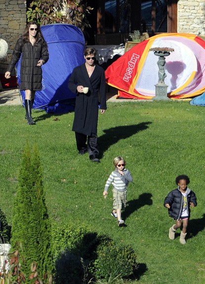之前在美国波士顿拍摄新片《点球成金》的布拉德·皮特7日前往匈牙利的布达佩斯特与朱莉汇合。抵达机场的皮特身着皮衣墨镜,怀抱双胞胎科诺克斯与薇薇安宛如超级奶爸,之后又在布达佩斯豪宅中被拍到与朱莉和希洛、扎哈拉、帕克斯搭帐篷露营的情景,这一家人的生活实在是继惬意又不同凡响。朱莉因打算在当地拍摄其导演处女作而租下这栋位于森林中的别墅,目前已将孩子们送进了附近的学校,据美国媒体报道,孩子们的老师都签下了对媒体保密的协定。朱莉的新片是以波黑战争为背景讲述一个爱情故事,拍完了《点球成金》的皮特多半会留在她身边加以“辅助”。