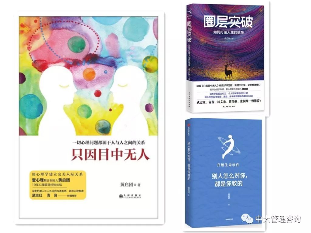 黄启团先生,专注于应用心理学领域21年,是一位集导师与投资人于一身的心理学专家,将心理学理论成功运用于企业管理、经营、婚姻、家庭、亲子教育等领域。投资创立卓越的心理学平台壹心理,NLP学院网、睿智人生、大成心理学校、武汉心斋等心理机构。著有心理学畅销书《只因目中无人》、《圈层突破》、《别人怎么对你,都是你教的》。