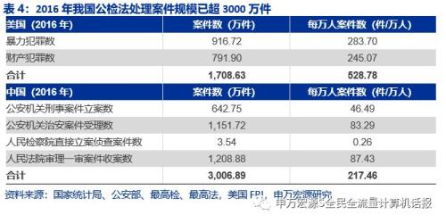 我国公检法年处理案件超3000万件,对标美国,国内取证市场规模实际将达百亿级。2016年国内刑事案件立案、治安案件受案、检察院立案、人民法院一审收案合计3007万件。假设按照美国单位案件取证价值保守测算,仅公检法取证市场规模在128亿元人民币。目前电子取证在省级机关和部分发达的地市机构渗透率较高,若进一步考虑客户下沉、从公检法向外渗透以及全球市场增长,未来3-5年我国电子取证市场规模有望达300亿以上。