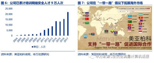 培训带动销售,并积累行业Know-how,学员培训超过9万人次。截至2018年底,美亚信息安全学院已举办培训班两千余期,协助客户培养网络安全人才9万人次。2018年公司成立了业务支撑委员会,下设培训服务组和技术支持组。其中,技术支持组拥有一支300多人的专业技术支持团队,提供7*24小时技术支持服务。
