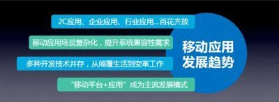 如今,尽管云平台的功能范围表现比较细化,但技术人员不可能把所有的云功能都添加完成。2016AppCan移动开发者大会上,正益移动CTO赵庆华表示,技术上希望AppCan的特性和云化版本有些区别,在满足用户使用更加简单的前提下,还要保证较高的可定制性,让用户更容易扩展门户以及工作平台。“AppCan只专注于最主线的工作,与开发紧密相关的工作,至于其他部分我们也会引用和借鉴别家公司,例如Testin云测的产品,我们也在使用。目的是通过这个聚合降低难度,明确开发者最应该做的事情。”
